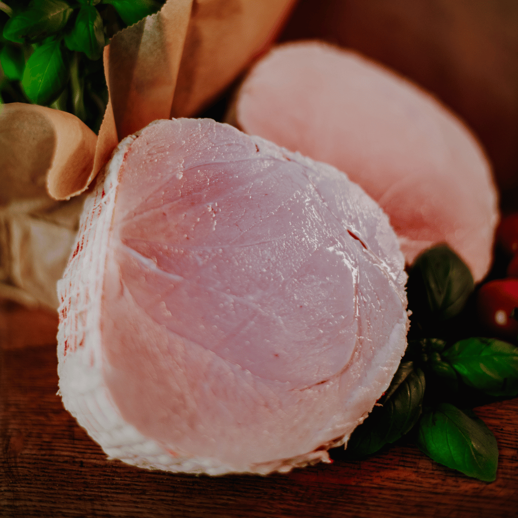 Szynka parzona biała powstaje z mięsa wieprzowego, które poddawane jest procesowi parzenia, bez wędzenia i dojrzewania. Dzięki temu zachowuje jasny kolor, naturalną soczystość oraz wyjątkowo łagodny, czysty smak.